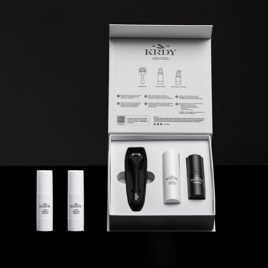 Kitul nostru de creștere a părului + două sticle de ser pentru creșterea părului, suficient pentru tratamentul complet.